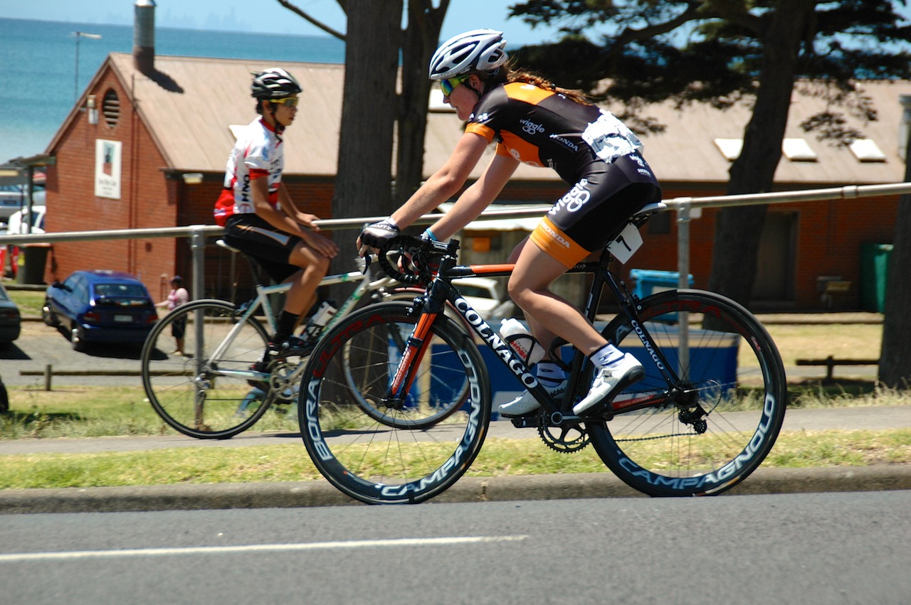 So 2013 has now began and for me it was with my new team Wiggle Honda at the Bay Cycling Classic series in Geelong from the 1st to the 3rd of January. I was really looking forward to the event and to meet my new team mates for the 2013 season. Racing for Wiggle Honda was Rochelle Gilmore (NSW), Anna-Bianca Schnitzmeier (Germany), Emily Collins (NZ) and guess rider Jess Mundy (S.A) along with myself. The series was a great opportunity to get to know each other for the first time, get a feel for our beautiful new equiptment and Colnago bikes as well as some good hard aussie racing! We managed to place Rochelle on the podium for the first stage and the following two days had some great opportunities to try different combinations and tactics before we head over to Europe in the coming weeks. Personally I really enjoyed meeting everyone and the racing was fun and fast. I managed to finish 9th on the final day and will be looking to carry my form over to the National Championships starting on Thursday the 10th in Ballarat.